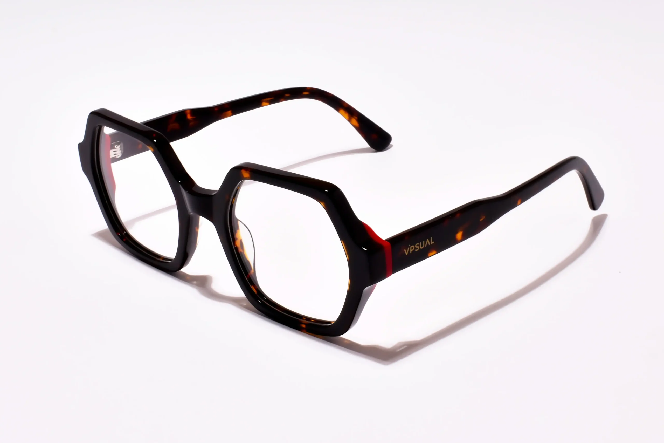 Fabricada en acetato de alta calidad, la Vipsual Antipodum se presenta en tres colores: negro sobrio, un elegante havana y un rojo coral transparente muy juguetón. Cada color representa un carácter diferente pero el impacto de las fuertes líneas hexagonales es el mismo.