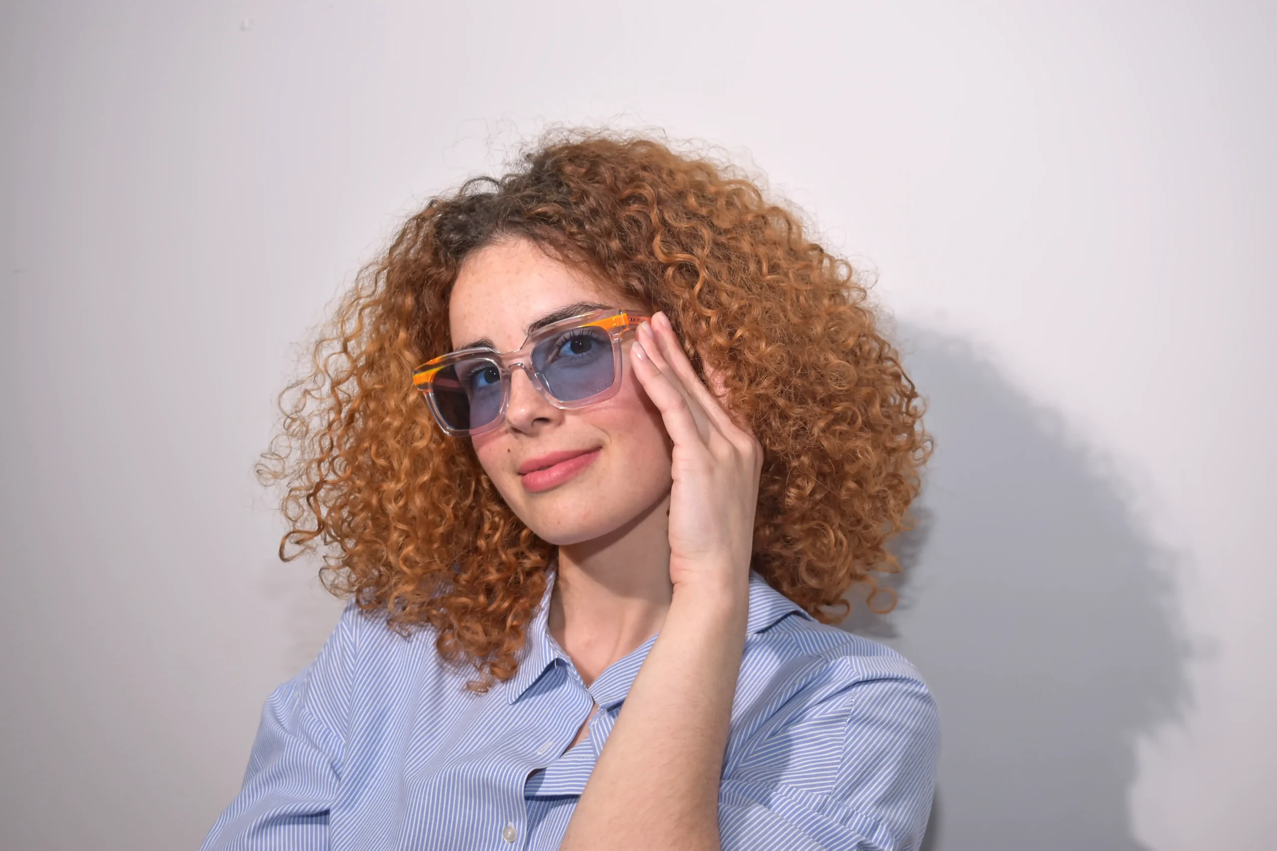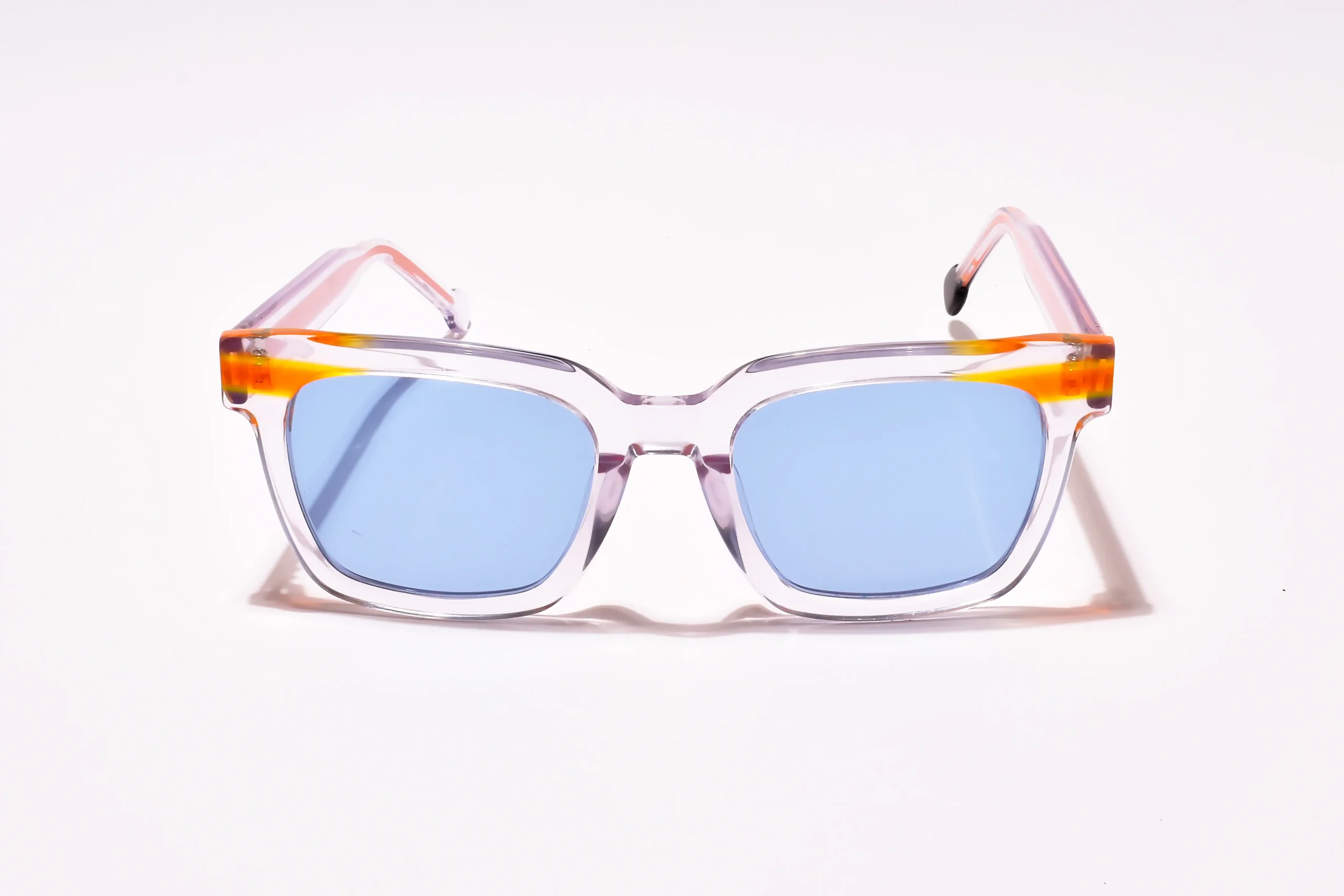 ¿Cuál es su secreto? El secreto de las Vipsual Memnom está en la combinación de elementos frescos, modernos y con mucho contraste de color. Esta montura cuadrada de acetato transparente deja al descubierto un esqueleto naranja flúor que va en consonancia con los pequeños detalles del frontal. Todo esto se une a su vez a unas lentes polarizadas en un tono azul suave que dejan entrever tu mirada y llenan a este diseño de expresividad.